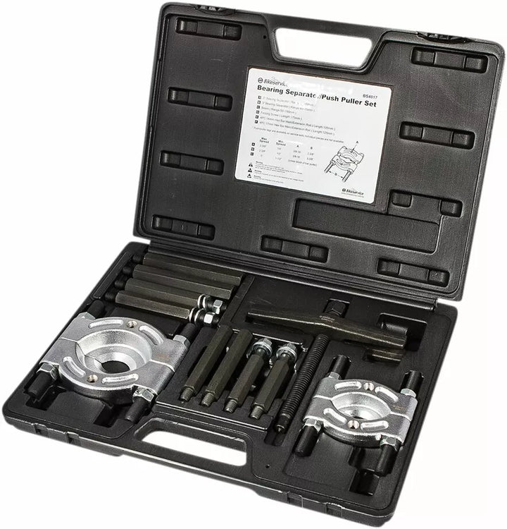 Includes 2 "and 3" Bearing Splitters with Pulling Capacity from 30 mm to 75 mm, Bar-Type Puller Head with 175 mm Trust Bolt, 2 "Bearing Splits 30-50 mm Maximum Reach Up to 170 mm, 3" Bearing Splits Maximum Maximum Reach Up 220 mm Other Engine or Mechanical Parts