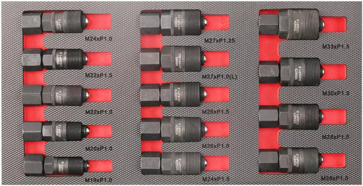 Has thread pitch and size combinations to fine almost all motorcycles, 14 Piece puller set for external or internal use, Storage Case Included