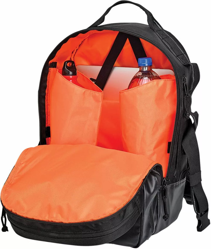 1680 Denier Ballistic Nylon Outer Chassis With PVC Coating Outer Shell, PVC-Treated Heavy-Duty Bottom and Lower Side Panel's Resist Water and Dirt, Padded Laptop Sleeve With Elastic Retainers in the main compartment, Upper exterior Compartment Molded Nylon Buckles on Cinch Straps For Speedy Mounting on Sissy Bars, External Straps Can Be Used to Add a Bedroll, Jacket or Skateboard to the Bag, 6 Heavy-Duty, Bar-Tacked Lashing Points for Loading and BioMING Options, Padded Should and comfort, Holds 48 - 12oz Cans