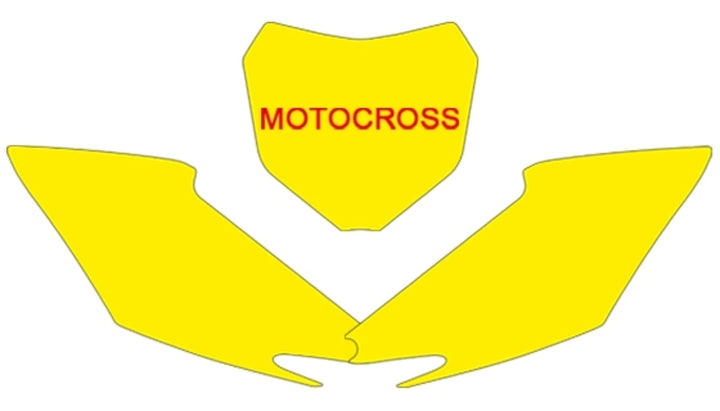 Set of Plates Stickers: 1 Front Plate Sticks + 2 Side Plate Stickers0.4mm Thick Stickers-Thickness Special Designed for Off-Road Useanti-UV Treatment and Solvent Resistant Back Printed for Maximum Life LastingDelivered Without Racing Numbers Color: Yellow
