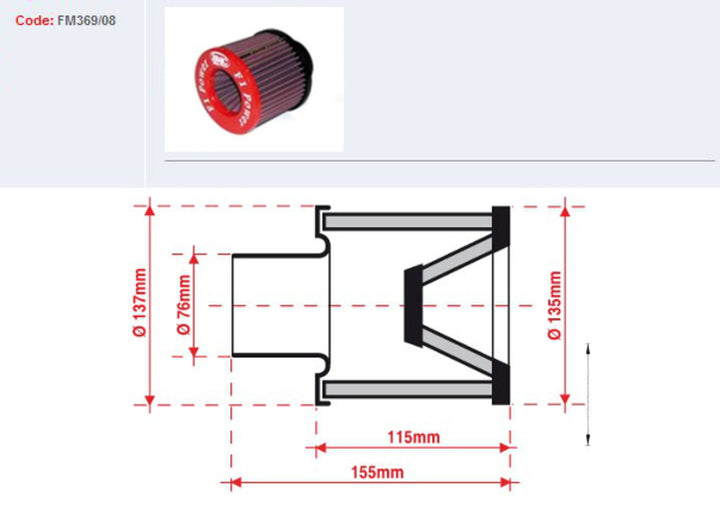 BMC Air Filter Tapered Ø76mm - FM369/08 FM369/08