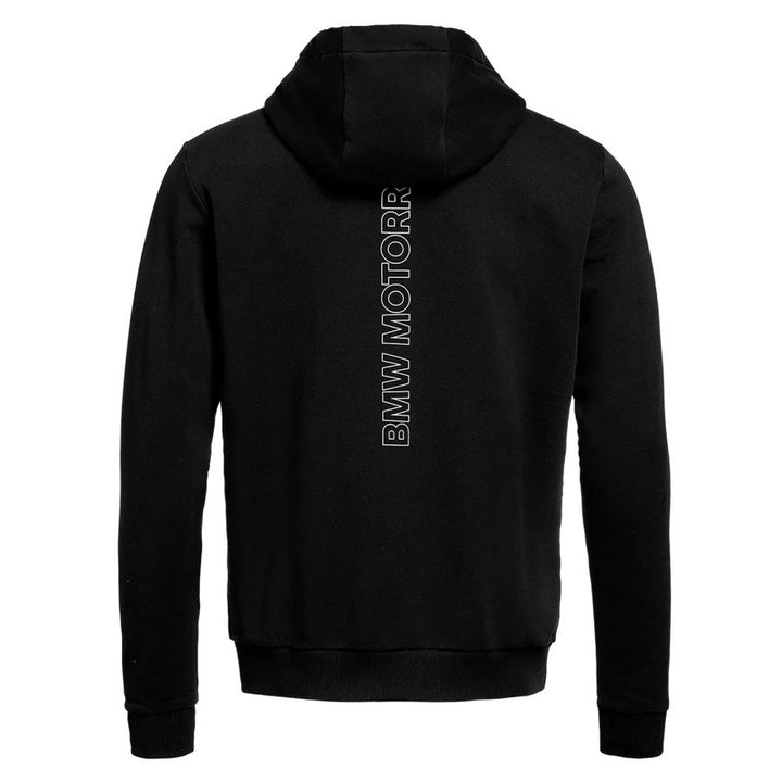 This black hoodie with zipper is a tribute to BMW's motto: Make life a ride - And it is noticeable in every detail. A perfect companion for those living for freedom, roads and adventure - both on and off the mound.