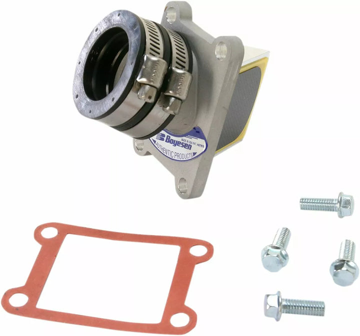 Maintain Flow Velocity through the Valve and Redirect Intake Charge for More Even Distribution to Intake Ports, Made of One-Piece Aluminum Castings and Bolts in Easily; No Modifications Necessary, Provide Quicker, Sharper Throttle Response and More Horspower Throughout RPM Range, Special-Designed Reed Cage Holds Boyesen's Patent Dual-Stage Reeds, Boyen's Hot Rad Rad Valve Turvey