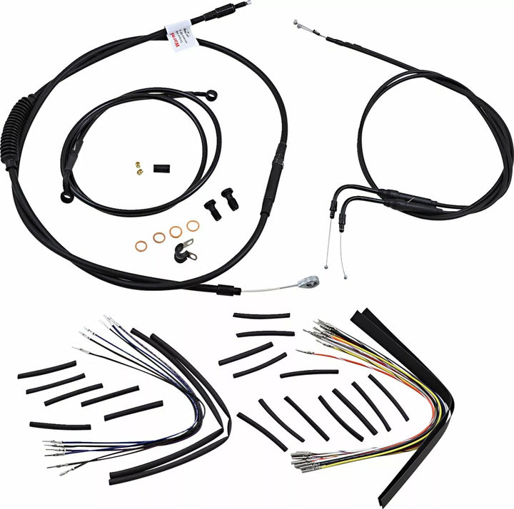 Complete Installation Kit For Burly Ape Hangers, Kit Includes Extended Brake Line (Unless Noted), Extended Clutch Cable/Clutch Line, Extended Throttle/Idle Cables as Required and All Necessse Wiring, Brake Inner Lines, Whhen Included, Felemudd, Outer Braid, Dresser Kits Reuse Stock Throttle-By-Wire Harness, Kit is Based on Using 2 "Risers with Ape Hanger-Style Handlebars.