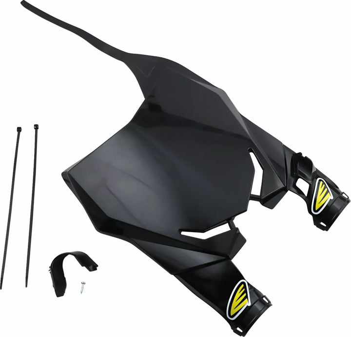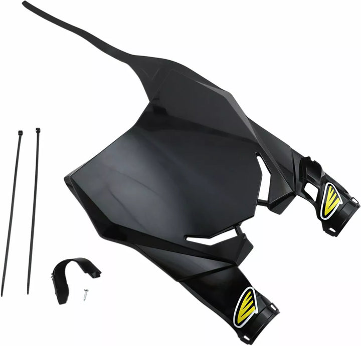 Used by Factory Teams, Ultra-Lightweight and Slim With Extra Space For Stabilizers and Bike Electronics, Includes Works Cable Guide and a Crossbar Strap, Top Mounting; Wraps around the Fork Tubes, Older Models Include Upper Mounting Bracket to Fit Front Mount Triple Clamps, Comes with White and Black Screens, Made in the U.S.A.