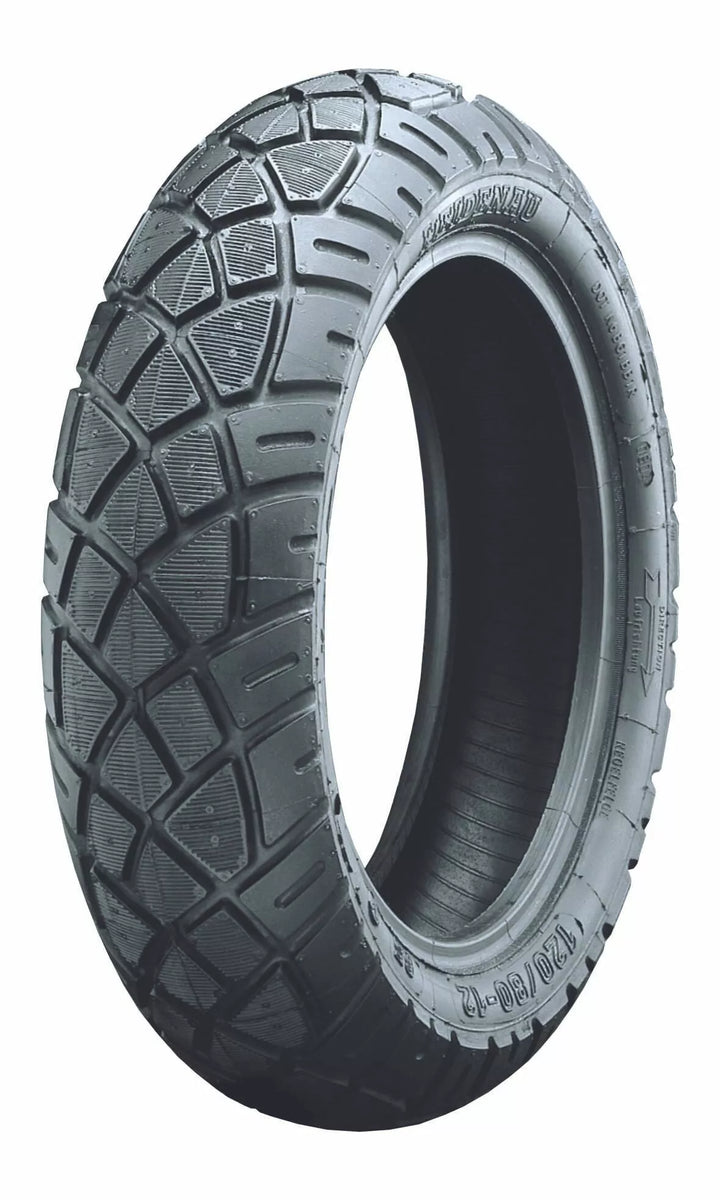 FOUR-SEASON SCOOTER Tire, Modified from Standard K58 for Different Size Applications, Open Treat Blocks For Superior Drainage, Excellent Grip, Even When Wet, Tubeless (TL), Blackwall, M-rated for Speeds Up to 130 km/H (81 mph) .