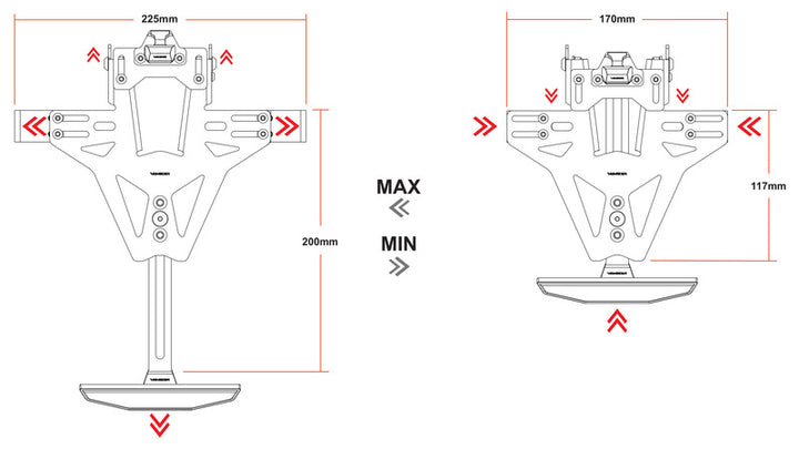• Adjustable blinker brackets in width - fit most accessory flashers