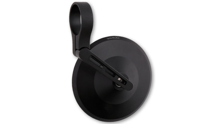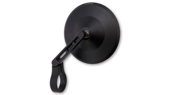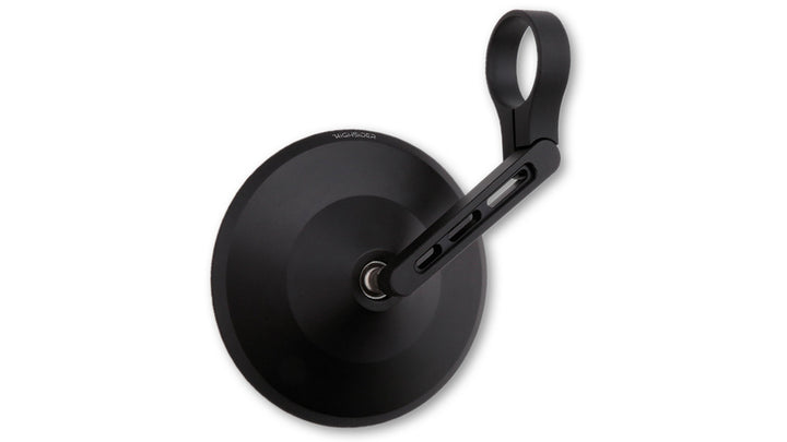 Universal handle mirror with a handsome and noble design in black anodized aluminum. The three air slit of the mirror arms gives both a sporty and functional appearance. A hinge on the clamp makes it possible to adjust the mirror for better visibility.