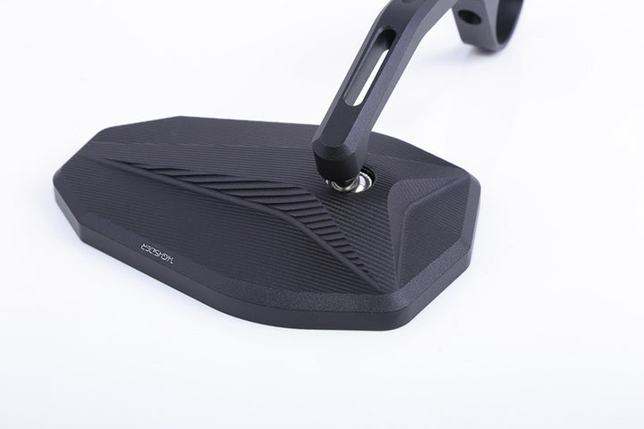 An elegant bare end mirror with a head of black anodized aluminum. The detailed CNC-processed surface with tracks makes Highsider Victory-X appear even more sophisticated and gives the timeless form a new optical highlight. Fits both 1 inch (25.4 mm) and 7/8 inches (22 mm) the handlebars and can be used on both the left and right side. E-approved.
