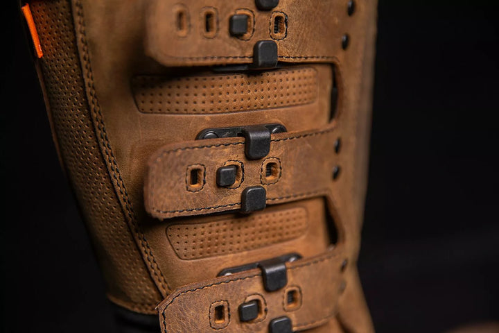 Premium Leather Upper Combined With Oil/Slip-resistant Outsoles For Rugged Style, Five-Strap Chassis Allow for a Comfortable Fit, Side Zippers for Easy On And Off, Tough Reinforced Shin Plates and Impact resistant Nylon Buckles, Internal D3 your ride take a turn for the worse, hi-rebound eva foam insole's provide all-day motorcycle riding comfort and support, reinforced shifter overlay