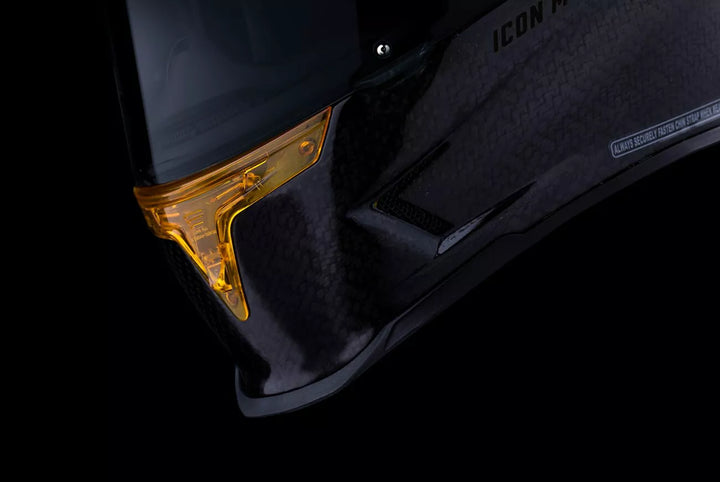 The helmet comes with Icon Tracshield ™, one Immreal visor which can be quickly replaced by RAPID-RELEASE ™ system. Both clear and dark visor included, so you're ready for all lighting conditions. The ProLock ™ system Secures the visor even at high speeds.