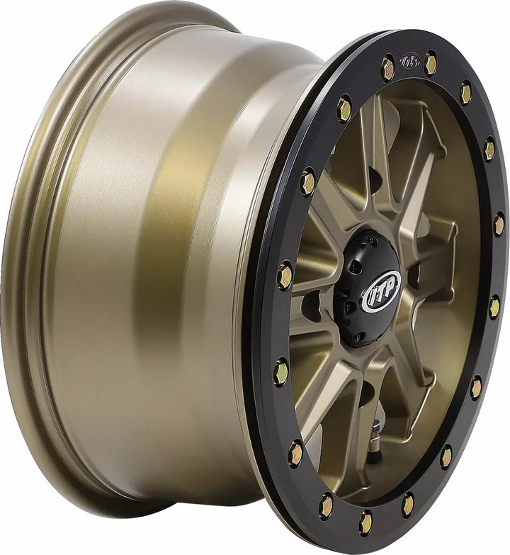 Beadlock Design Insures Outer Bead Stays Seated in Demanding Environment, Closer to Oe Offsets for Optimum Fitment and Performance, ITP Exclusive "Rock Armor" Inner Wheel Lip, Matte Black Finish with Machined Edges, Center Cap and Valve Rat, EU LOAD,