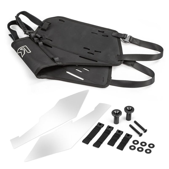 A new larger version of the popular OS-BASE that is specifically designed to fit the Honda CRF1100L (excluding the Adventure Sports model) OS-BASE is a "seat base" that allows OS-6, OS-12, or OS-18 ADVENTURE PACKS to be mounted as soft bags. No metal frames are required, this system provides a super strong, lightweight carrying solution for the CRF 1100L without permanent body modifications to the bike. The modular design allows you to change your luggage setup to suit your journey - from a day trip to longer adventure travels. CRF BOLT-ON LOOPS are included, which attach to the bike frame under the seat and fit behind the CRF mounts to provide 4 attachment points for a freestanding OS-PACK or US-Drypack. Used in combination with the extra loops on the OS-BASE, they provide various attachment points for a setup with three or more bags, or can be used to mount an OS-PACK as a freestanding bag on the rack without OS-BASE. The pre-installed straps make it easy to mount, and the specially designed main body shape provides a snug secure fit with good clearance from the exhaust. It takes less than a minute to mount the system on the motorcycle and just a few seconds to remove it.