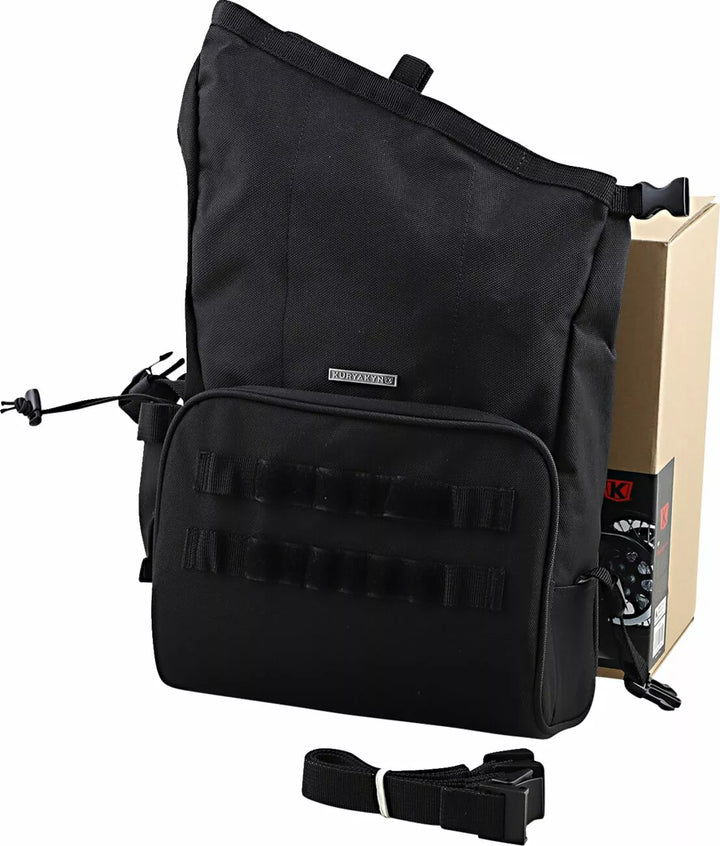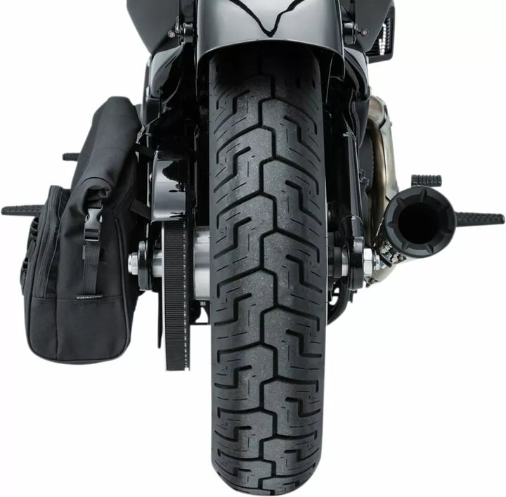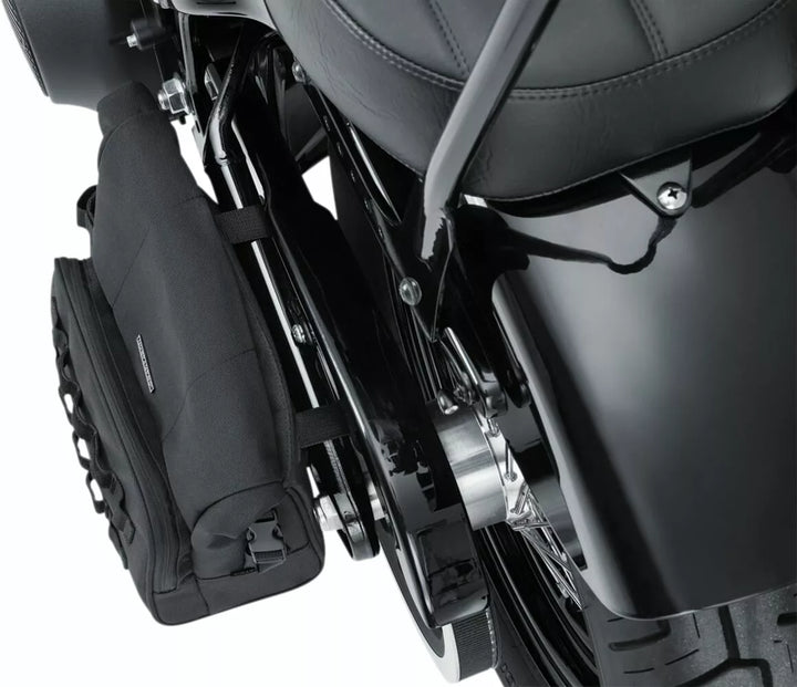 Secure roll-top design offers easy access while mounted, plus added protection from the elements, Made from UV-rated, weather-resistant 1200 denier textile, Interior liner keeps main storage free of debris and moisture, Rigid bottom-end design provides shape retention, durability and protection from the elements, Mounts to virtually any exposed triangle-style (Softail) Swing arm, Secure Safety-Focused Strap System Keeps Slap to Avoid Potential Belt/Chain Interference, External Zippered Compartment Plus Multiple Molle Molle Molle Molletm Cubic inches, EU: Measures 14.75 l
