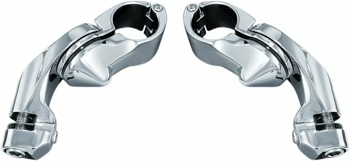 Now You Can Easily Mount Cruise Pegs On Dresser/Touring Models With Highway Bars and Fairing Lowers, Special Clamp Interfaces With An Offset Arm To Reach Around The Bike's Lowers, Entire Assembly Can Be Moved Up Or Down On The Engine Guard or Adjusted Along A Vertical or Horizontal Arc, Unique Clevis Permits Angle Adjustment of the Foot Peg, Mount Fits 1-1/4 "Diameter Engine Guards or Frame Tubing