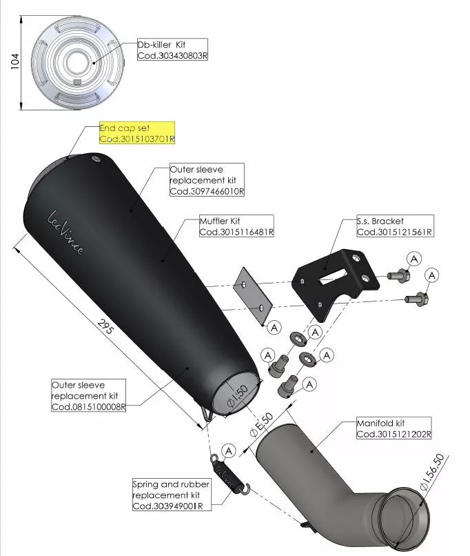 Leovince Exhaust Replacement Parts, End Caps, Available in Stainless Steel or Carbon