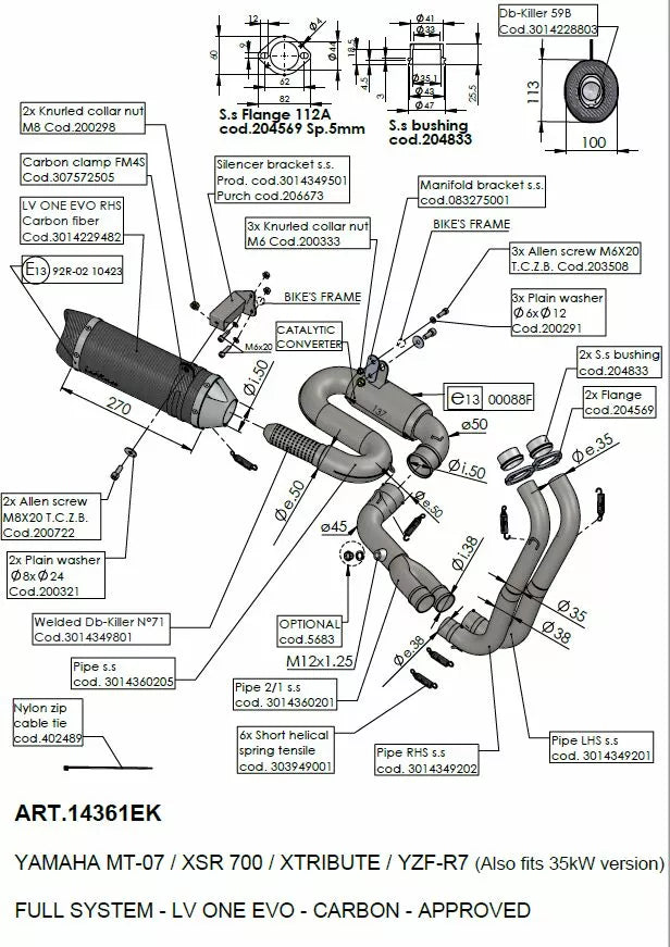 LV One Evo Carbon Fiber, The Leovince Lv One Evo Carbon Is The Synthesis Between Tradition and Modernity., It Combines The Leovince Classic Style Looks and Innovation In The Research of the Most Performing and Lightweight Materials. Resistant Packing (1,650 ᄚ F), Adjustable Full Carbon Fastening Strap