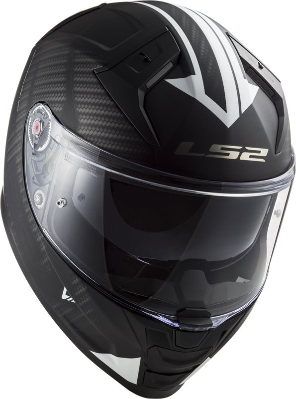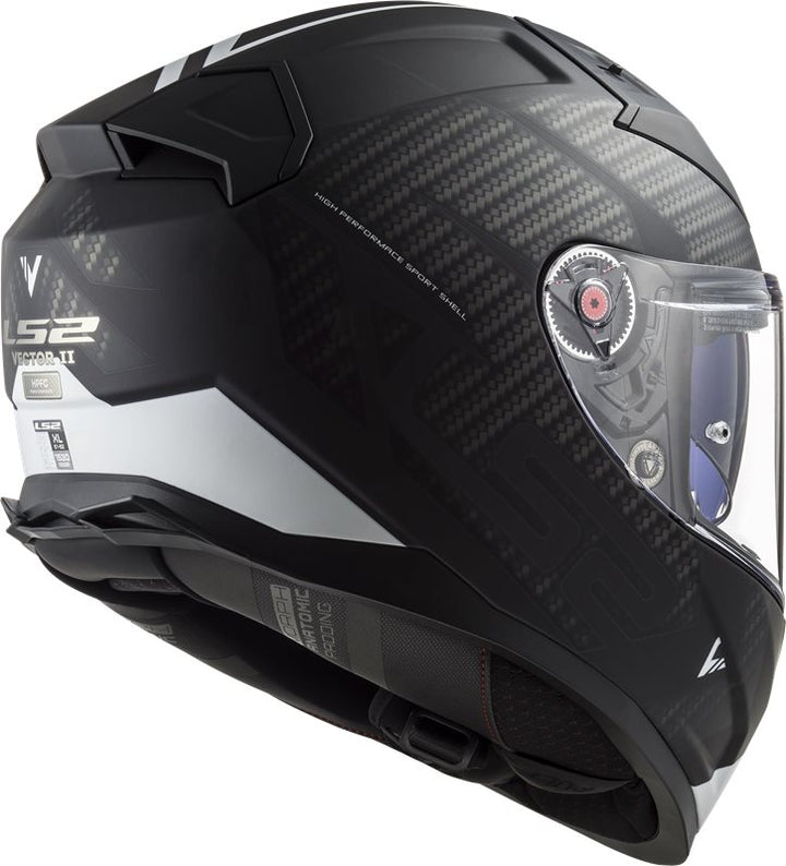LS2 Integral Mc-Hjälm Vector II Tron Svart/Vit med aerodynamisk design, kolfiberdetaljer och justerbart visir. Perfekt för motorcykelåkning i stad och landsväg.