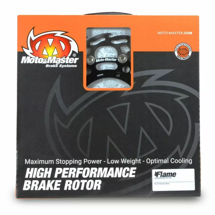 , Oversize, Full-Floating MX Front Rotor with Black Anodized, Laser-Marked Carrier, Lightweight Stainless Floaters and A Stainless Flame Design Outer Ring in 298 mm diameter