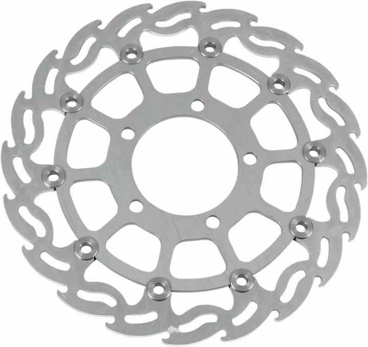 Flame Discs Are Made From Hardended and Refined Chrome-Molybdenum Alloy Steel, Material Ensures Extremely Little Rotor Wear and High-Performance Braking, Flame Discs Are Precision Lasercut, CNC-DRilled and FLAPACE-MACHIND Surface Are Designed for Efficient Cooling and Disc Cleaning to Evacuate Water and Mud, Discs Can Be Used With Any Type of Brakepad, Including Sintered, Aramid, and Ceramic Carbon Pads