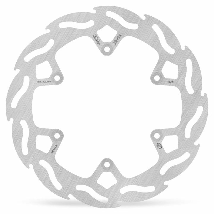 Flame Shaped Valenting Slots And Outer Perimeter Ensure An Equal Amount of Contact Surface Between The Brake Pad and Disc Throughout The Who Rotation of the Disc., Smooth and More Predictable BRAKING ACTION WHICH ALLOWS YOU TO BRAKE HARDER. Double-grinded for Perfect Fitment and Flatness, for Best Performance We Recommend Using Moto-Master Brake Pads with the Matching Pad Compound That Best Suits Your Type of Riding.