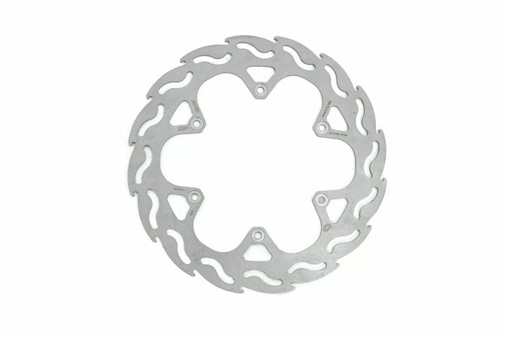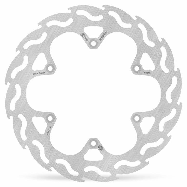 Flame Shaped Valenting Slots And Outer Perimeter Ensure An Equal Amount of Contact Surface Between The Brake Pad and Disc Throughout The Who Rotation of the Disc., Smooth and More Predictable BRAKING ACTION WHICH ALLOWS YOU TO BRAKE HARDER. Double-grinded for Perfect Fitment and Flatness, for Best Performance We Recommend Using Moto-Master Brake Pads with the Matching Pad Compound That Best Suits Your Type of Riding.