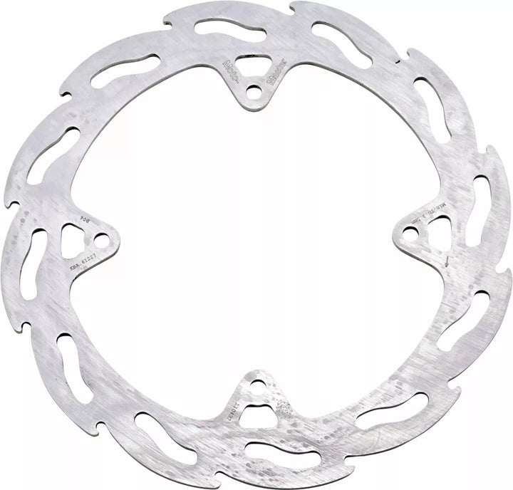 Flame Shaped Valenting Slots And Outer Perimeter Ensure An Equal Amount of Contact Surface Between The Brake Pad and Disc Throughout The Who Rotation of the Disc., Smooth and More Predictable BRAKING ACTION WHICH ALLOWS YOU TO BRAKE HARDER. Double-grinded for Perfect Fitment and Flatness, for Best Performance We Recommend Using Moto-Master Brake Pads with the Matching Pad Compound That Best Suits Your Type of Riding.