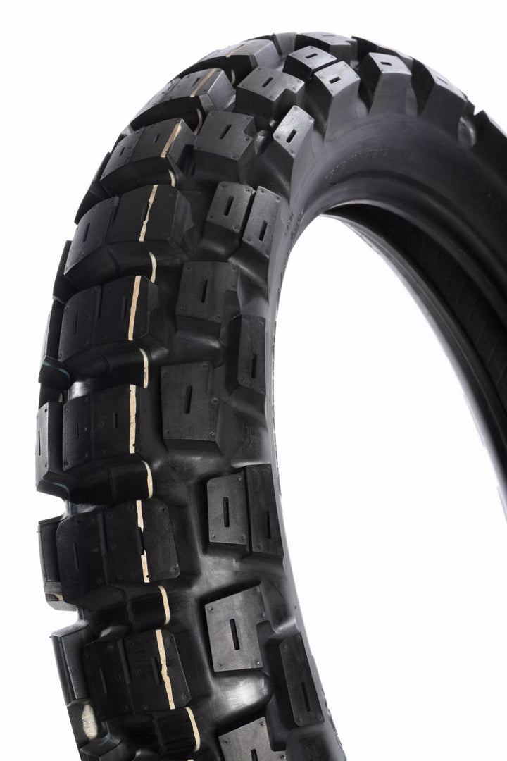 Designed to Handle the Toughest Terrain in Australia, USA, Baja and Across The Globe Providing Superior Off-Road Traction and Long Mileage., Stronger Construction Than Most Adventure Tyres Give World Class Off-Road, World Class Performance for the Serio Adventure Punctures., Uniquely designed Treat Blocks Self-Protect for Long Life and Self-Sharp for Better Traction through the Life of the Tyre., Optimized Hybrid Natural / Synthetic Compound Produces Depandable Grip in All Weather extremes. Adventure Tires for Better Traction in Mud and Snow., Superior Block and Profile Design Enables Larger Footprint Providing Superior Off-Road Traction and Hi Speed Cornering.