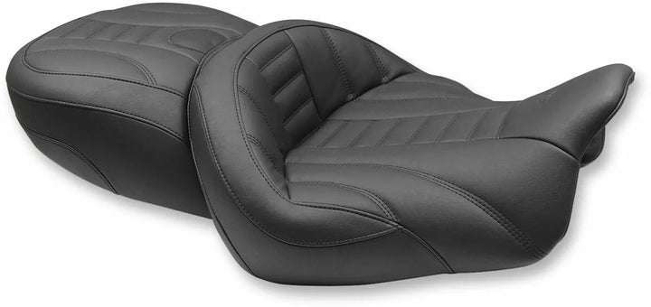 Clean Look and feel with an expanded vinyl cover and detailed automotive-inspired stitching, marine-grade fiberglass pan and all-day foam supports you in an ideal cruise posture that seven riders 2 "further back than our standard touring seats OPTIONAL Driver Backrest (Sold Separately), Will Not Work with a Frame-Mounted Driver Backrest Kit.