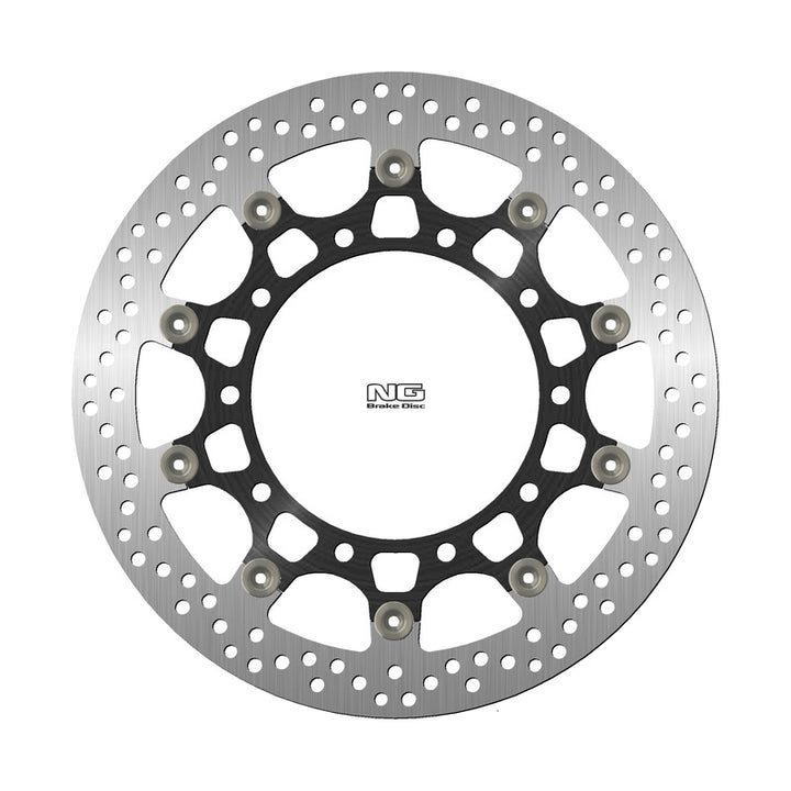 NGBreakes: | Description: NG ® is a company specialized in brake discs manufacturing with OEM standards. | Brake_Disc_Shape: Round | Diameter_Int_Ext_Ømm_mm: 148.4/330 | Disc_type: Floating | Hole_diameter_mm: ø 10.25 | Inner_diameter: ø 148.4 | Number_of_holes: 5 | Outer_diameter: ø 330 | Thickness_mm: 5.5 mm