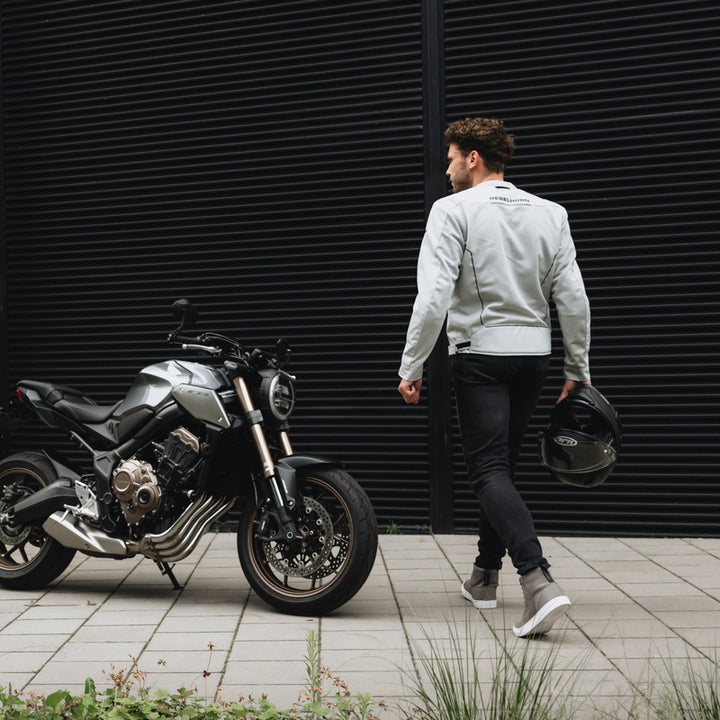 The jacket can be connected to all Rebelhorn's textile pants using a zipper. The zipper allows you to also attach the jacket with jeans from the new Rebelhorn collection.