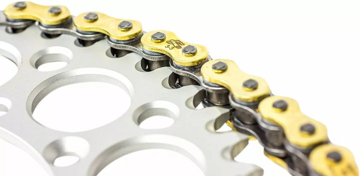 This New Chain Design Does Away with the "O-Ring" and Instead Incorporates Renthal's SRS (self-regulating seals) Ring system to increase chain longvity, chain has been upgraded to the r4 ranges tests quad riveting manufacturing process Facilitate Easier Installation that does not require a quad stake tidal to install, high-carbon alloy steel pins, solid bushings and rollers, and shot peening of plates and rollers for increased fatigue resistance, clip type and grated linkcludd