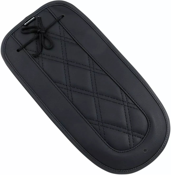 Decorative trim for solo seat installation, contoured to fit fender, covers marring of paint from pillion installation, installs under solo seat and rear seat mount tab, matches saddlemen seat, luggage and tank chaps, popular edperado styling and to studds, conchos and leather ties, Made in the USA
