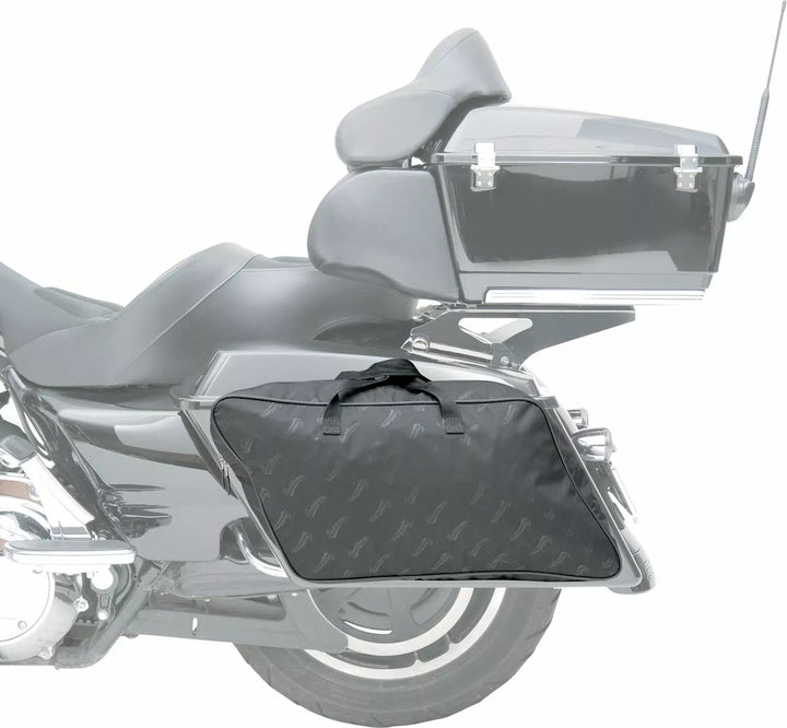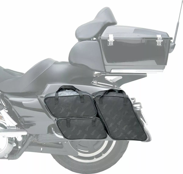 Great for Trips, Overnighters and Organizing Your Tools or Cleaning Supplies. SIMPLY LIFT YOUR LINERS OUT OF THE SADDLEBAGS TO MOVE YOUR CARGO EASILY INTO THE HOTEL, CAMP GROUND OR TO UNLOAD FAST ONCE YOU'RE HOME, MADE FROM LIGHT, But Durable PVC-Lined 150-Denier Polyester with Sturdy Zippers Away Permit Over-Pack Measures: 15-1/2 "L x 10-1/2" W x 5-3/4 "H, Retain Gas Can Not Included.