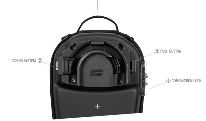 As well as being easy to use and easy to integrate into the motorbike, it features a push butt that Allows the bag to be unlocked Quickly, Simply by Pressing Down on it. Color: Black Material: Aluminum