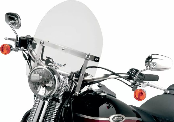 Medium-size Windshield; 1 "Hardware Included, Universal Handlebar Clamp Mounting, Fits Most Harley Davidson Models Using 1" Buckhorn or Pullback-Style Handlebars and A 5-3/4 "Headlight, made in the U.S.A.
