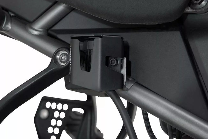 The Compact Brake Reservoir Guard Protects The Original Brake Reservoir From Rock Chips and Simultaneously Prevents Unwanted Removal of the Cover. The Protector Can Be installed on the motorcycle in a few simple steps, Made of 2 mm thick aluminum, high-quality design and craftsmanship, protects the original brake reservoir from rock chips, prevents unwanted removal of the cover, includ in deliver