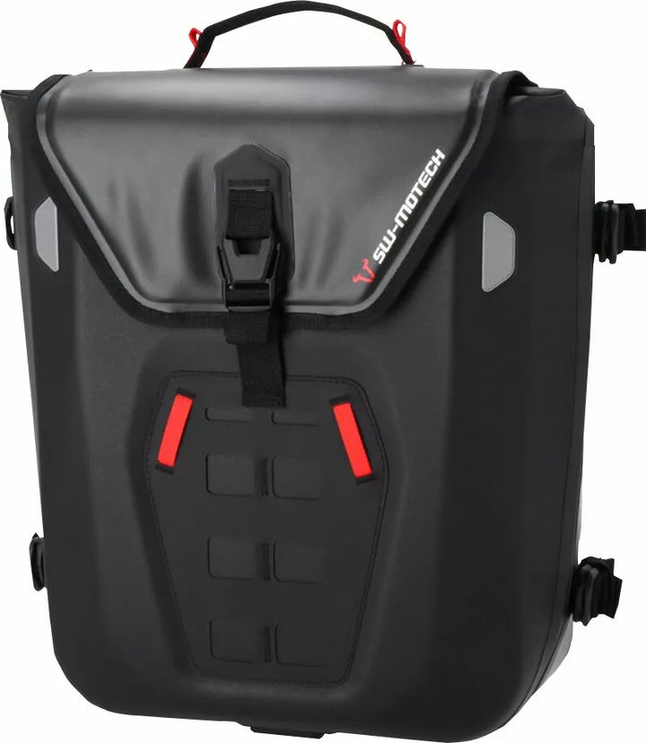 The Sysbag m Wp is a robust soft lugge Solution with an adventure look, it is mounted eiter on the slc carrier or by looping it on the tail.similes to the waterproof tank bags, the sysbag wp is made from a tpu and eva materials Form a compact Unit, Making the Bag Complely Waterproof, The Sysbag WP Features a Roll-Top Closure and an Overlapping Lid. The Inner Pocket is Removable, Two Freely Positionable Dividers With Velcro Fasteners Make It Easy To Keep Luggage Separate, to Allow The Bag To be Attached Quickly To The Lift Slc Side Carrier, You'l Need to Fix the Adapter Plate Plate That SyspiSB Process: Firstly, Screw the Three Mounting Elements for the SLC SIDE Carrier onto The Adapter Plate, Next, Attach The Sysbag Wp to the Adapter Plate With the Loop Straps. Once That's Done, You Can Hang The Bag The Left SLC Side Carrier in One Simple Movement, Made of TPU Material and Eva Plastic, Attaches to the Left SLC Side Carrier with the Included Adapter Plate, 100% Waterproof Main Compartment, Roll-Top Made of 210 Rip 210 Bags, Reinforced Handles, Reflective Details for Better Visibility, Lashing Eyelets for Attaching Cable Locks, Velcro Fasteners to Fix The Excess Belt Lengths, The Adapter Plate's Quick Lock System Guarantees That The Sysbag WP WILL BE HELD SIDE SACULY Back of Sysbag WP Bags Using The Straps, Size: 32.5 x 16.5 x 41.0 cm / 12.8 x 6.5 x 16.1 In, Total Weight: Appr. 2.8 kg / appr. 6.3 lb, Total volume: 17.0-23.0 l, included in Delivery, 1 x Sysbag wp m, 1 x Adapter Plate Left for Sysbag Wp m, 4 x loop straps, 4 x Anti-slip straps, 1 x Paint Protection Film, Mounting Instruct for Adapter Plate, You'l also Find Additional Sysbag WP Bags with Adapter Plates for SLC Side Carriers