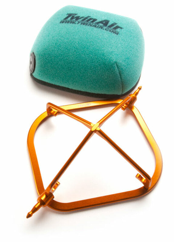 The Best Filter in the World Can't Do Its Job if there are leaks in the seal of the airbox.that's Why Twin Air Provides a Complete Line of Products to Ensure a Leak-Proof, Fool Proof Fit. Twin Air's Powerflow Kit Comes with a Rigid, Lightweight, Billet Aluminum Cage That Provides A Tight Seal to the Airbox and Replaces Your Flimsy Plastic Stock Cage. The Kit Include A Pre-Oiled Twin Air Filter, A Special Aluminum Cage and All Necessary Mounting Hardware.