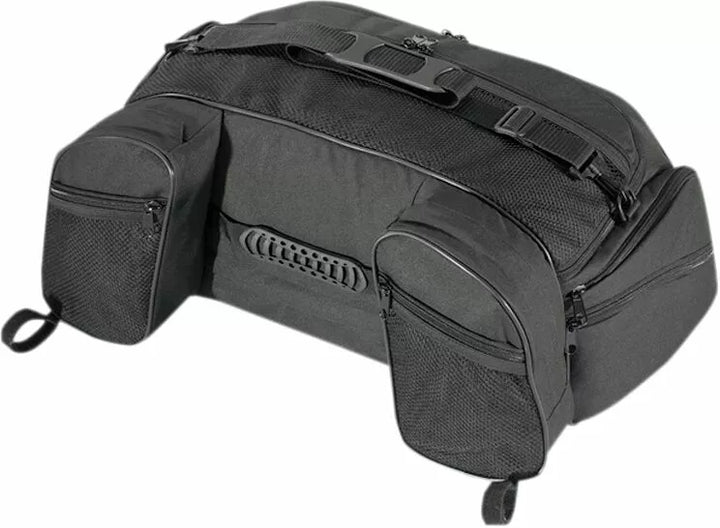 600-denier polyester construction with water-repellent polyurethane coating, Pull-out Rain cover Fits Perfectly over bag and has its own Storage Pocket, Large Main Compartment, Three Mesh Pockets and Two Expandable, Zippert Side System, Four-pocket W x 8 "h