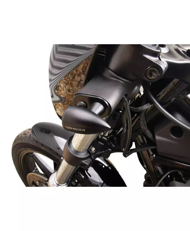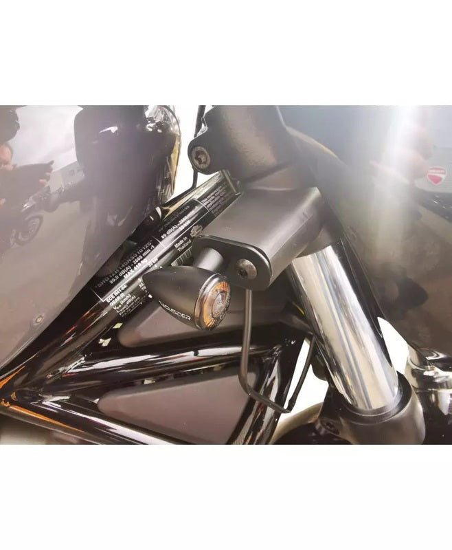 V Parts Cochd009av are a couple Front flashing brackets; particularly developed for Harley-Davidson Nightster. The brackets are Seed out of solid 2 mm thick steel And surface treated with Matt black epoxy lacquer for best durability and a discreet factory appearance.