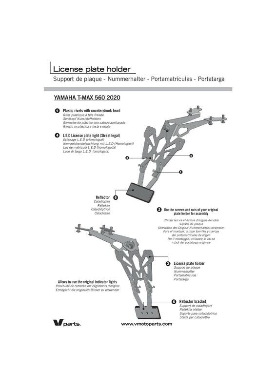 V PARTS License Plate Holder Black Yamaha T-Max 560 C8-SPY034