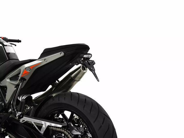The License Plate Holder is Extremely Durable and Weather Proof., Black Powder Coated. , The License Plate Holder Can Be Used For Any Kind of License Plate (175mm Width)., No Modification of Fairing Required., Stepless Adjustment of Rake Angle., Indicator Support Adjustable in 3 Positions. Plate., Special Indicator Light Mounts (Sold Separately) Required for Stock Indicator Lights., Kit Includes: 1 License Plate Holder Incl. Mounting Kit., LED License Plate Light "E Approsved" Incl. Support., Back Light With Support. Of: Germany, Slovenia, Croatia & UK.
