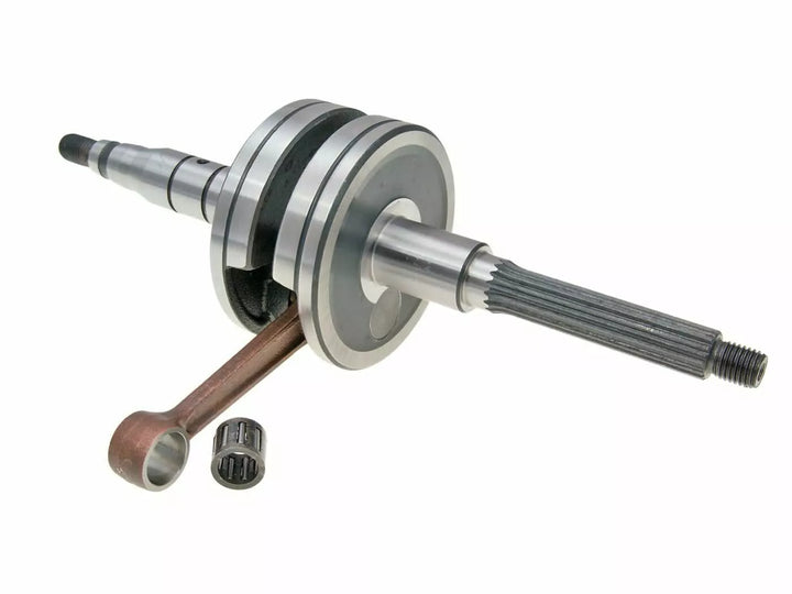 Very good quality aftermarket crank for horizontal 50cc Minarelli AC and LC engines, The crank is a 100% match to the original and is an outstanding aftermarket item, Also a good everyday choice for lightly-tuned 70cc sports engines, Crank requires 10mm gudgeon pins, as originally factory-fitted, When fitting a new big end, we recommend a new set of bearings and oil seals