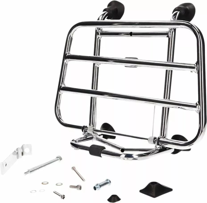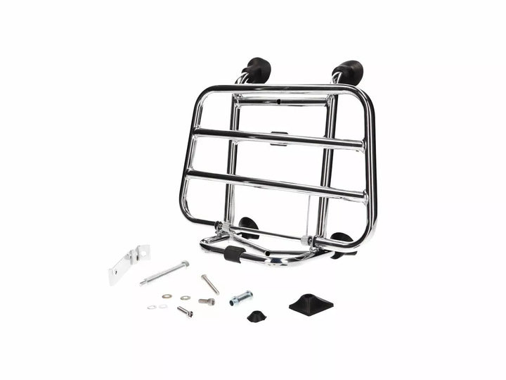 Folding, chromium-plated front luggage rack