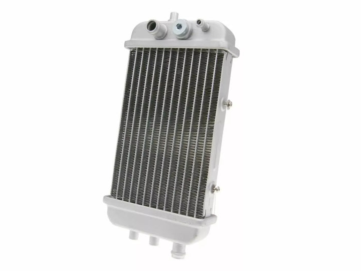 Replacement radiator for models with electric fan, This radiator has a thermal switch connector (for thermostat 00G03800741 - not included) as well as mounting points for the electric fan, A blind plug for the thermal switch connector is provided, for this reason, this cooler can also be used on older models