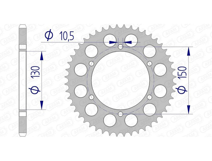 AFAM alu rear-sprockets are produced with an alloy which combines lightweight and resistance. The high-quality manufacturing process and the cutting precision made AFAM a world leader for motorcycle transmission parts. Racing type aluminium rear-sprocketUltra-light and hardened anodizationIncreases friction resistance and durabilityTop of range manufacturing and qualityEssential for racing Chain_pitch: 520.0 Material: Aluminium Rear_sprocket_teeth_count: 47.0 Rear_sprocket_type: 13604 Rear_sprocket_version: Ultra-light