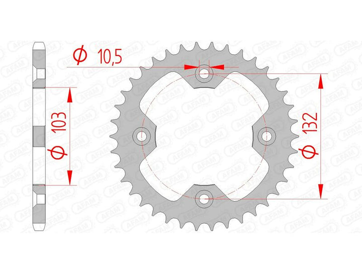 AFAM steel rear-sprockets are machined from C45 steel, and are then treated to higher hardness and even resistance. The high-quality manufacturing process and the cutting precision made AFAM a world leader for motorcycle transmission parts. Steel rear sprocketTop of range manufacturing and qualityContributes to transmission kit durability Chain_pitch: 520.0 Material: Steel Rear_sprocket_teeth_count: 38.0 Rear_sprocket_type: 71305 Rear_sprocket_version: Standard