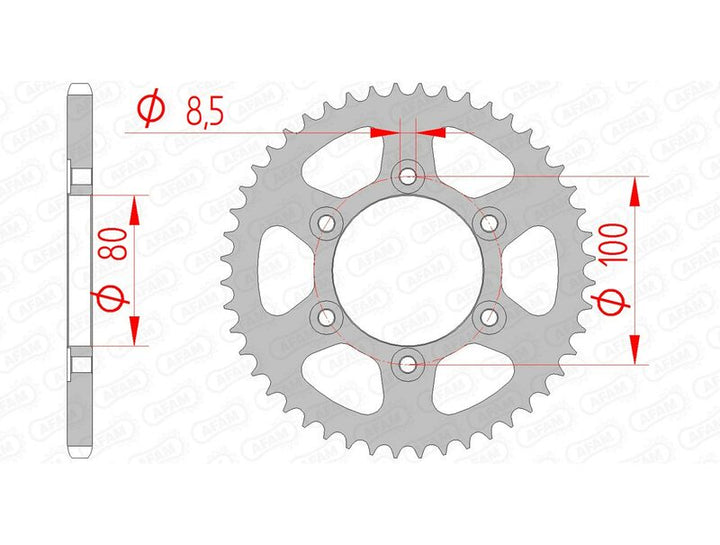 AFAM steel rear-sprockets are machined from C45 steel, and are then treated to higher hardness and even resistance. The high-quality manufacturing process and the cutting precision made AFAM a world leader for motorcycle transmission parts. Steel rear sprocketTop of range manufacturing and qualityContributes to transmission kit durability Chain_pitch: 420.0 Material: Steel Rear_sprocket_teeth_count: 52.0 Rear_sprocket_type: 80105 Rear_sprocket_version: Standard