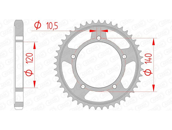 AFAM steel rear-sprockets are machined from C45 steel, and are then treated to higher hardness and even resistance. The high-quality manufacturing process and the cutting precision made AFAM a world leader for motorcycle transmission parts. Steel rear sprocketTop of range manufacturing and qualityContributes to transmission kit durability Chain_pitch: 530.0 Material: Steel Rear_sprocket_teeth_count: 45.0 Rear_sprocket_type: 86603 Rear_sprocket_version: Standard